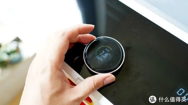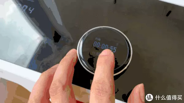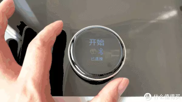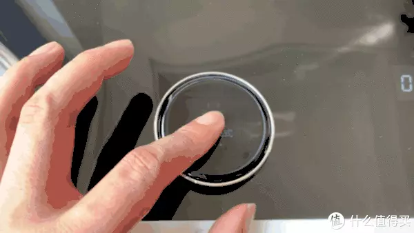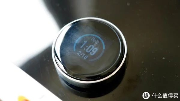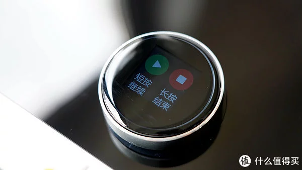 最值得称赞的却是这颗旋钮,仔细看除了顶部的玻璃镜面显示屏之外,旋钮的侧边是采用金属材质包围的,摸上去凉凉的很有质感,而恰到好处的段落感配合嘀嘀嘀的确认音,让人操作起来感觉非常流畅顺滑。