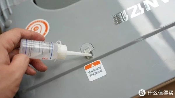 加润滑油的部位也非常好找,掀开塑料盖子就能直接添加润滑油了,电脑说明书上写了100公里以上电脑会在液晶屏上显示缺油,到时候添加一点就可以。