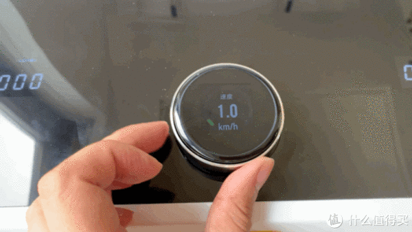 在电脑刚开始工作的时候,速度默认从0开始,使用者这时候可以通过快速旋转按钮(顺时针加速,逆时针减速)来调节按摩椅的配速,最高速度可达14公里每小时,跑过马拉松的朋友都知道,这是对应4分17秒的配速,对一般慢跑者来说已经够用了。