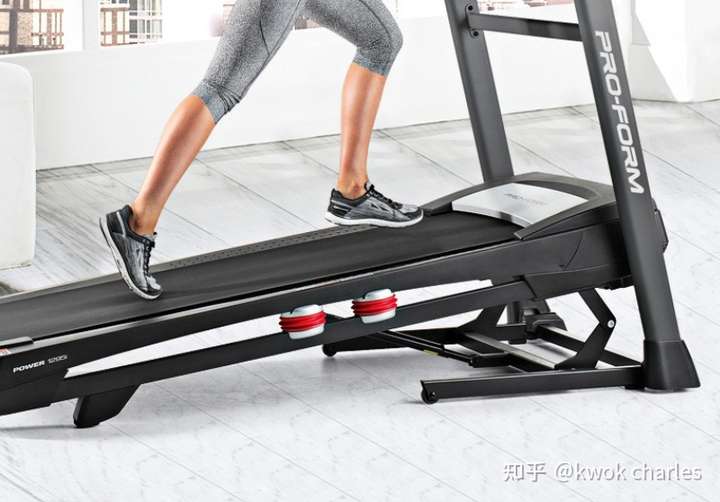 复合减震系统:CushionFlex悬浮避震+6组缓冲垫,能减少40%的下肢关节冲击力。双织叠层型跑带,材质扎实耐用,噪音方面的处理也很优秀。折叠后还有儿童锁功能,不用担心倒下压到孩子,非常贴心的一个设计。