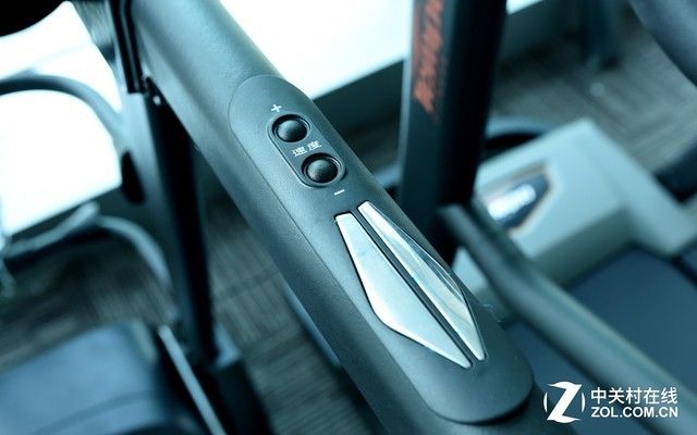 操控方面,除了触控操作以外,亿健9009还设置了不少物理按键。控制表盘上的物理按键以外,左右侧扶手上也集成了开关键与速度调节键。同时也设置了心率监测器。