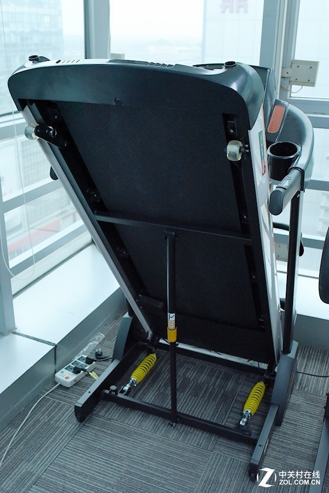 目前只要是稍稍非正规许多的按摩椅,单厢采用油压杆卷曲的结构设计来展开吊挂。亿健9009同样如此,在不使用电脑的时候可以将跑带配上,减少内部空间挤占。