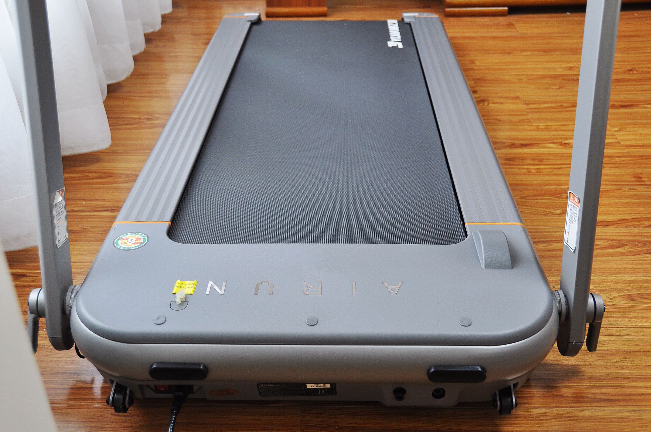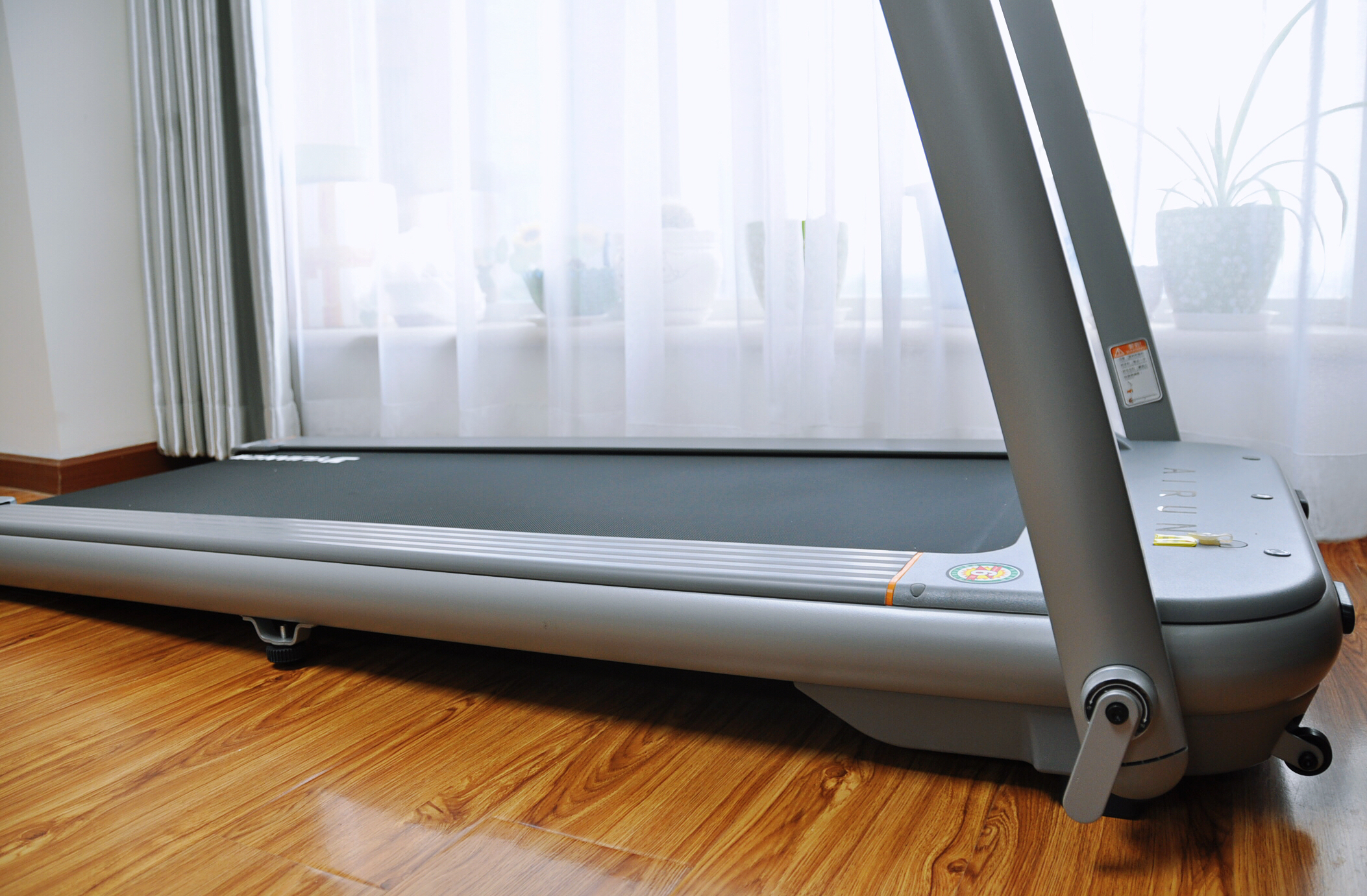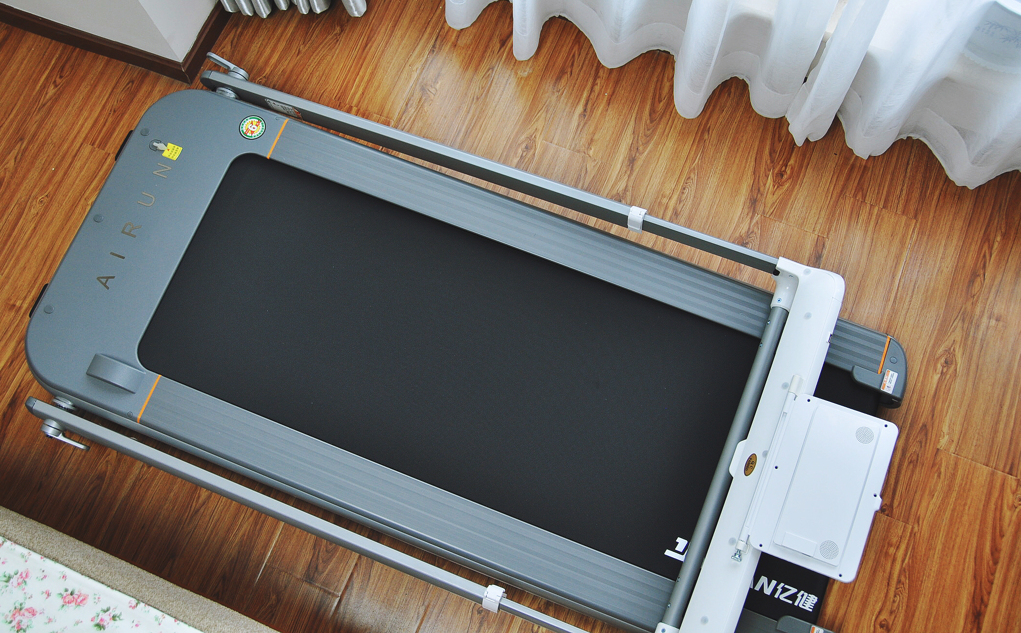 跑带的宽度和长度与标注一致,而且耐磨性和防滑性都相当不错。两侧8cm的防滑边条有条纹设计,防滑并且踩着很稳。在跑台细节上,跑台与地面间设计了2.6°的黄金慢跑夹角,慢跑时相比水平的跑台跑者的脚掌会更早接触,有助于更好的运动缓冲以及培养良好的运动姿势,同时提升运动强度,相同的运动天数获得更加高效的锻炼效果。