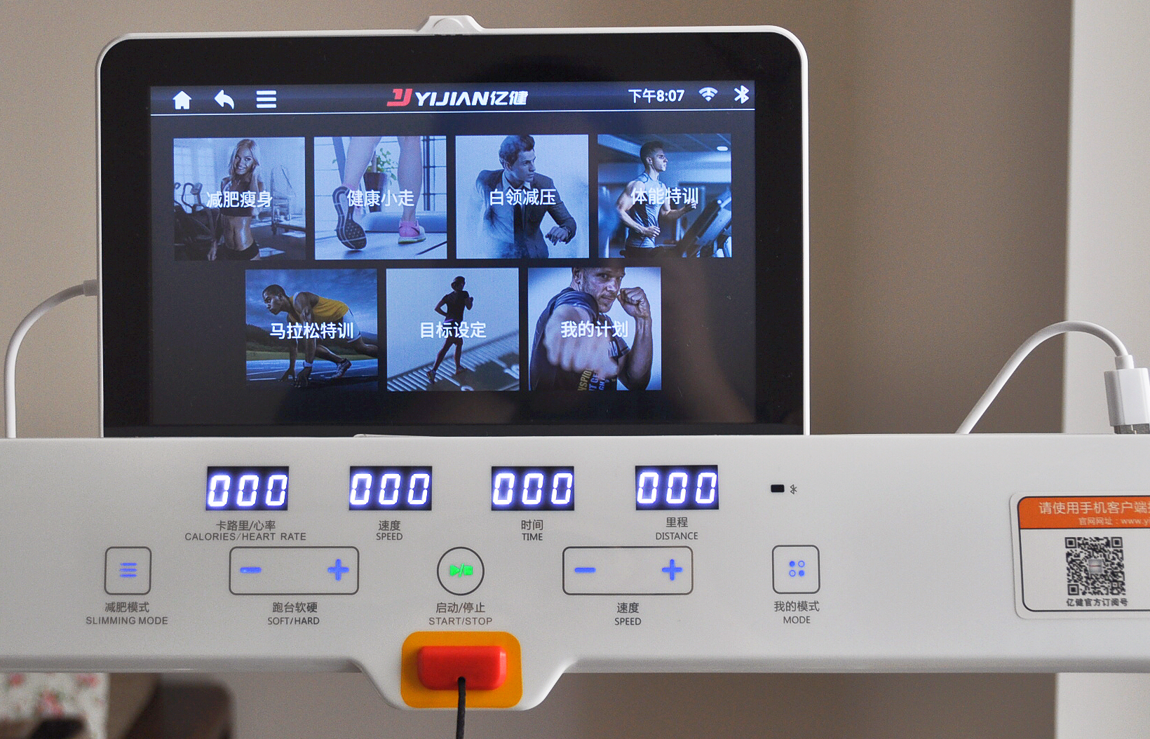 每次可以选择T8100课,专业课程比较多,感觉就像教练在陪你瘦身。专业课程包括亿健趣味跑、快乐减压跑等多种模式。