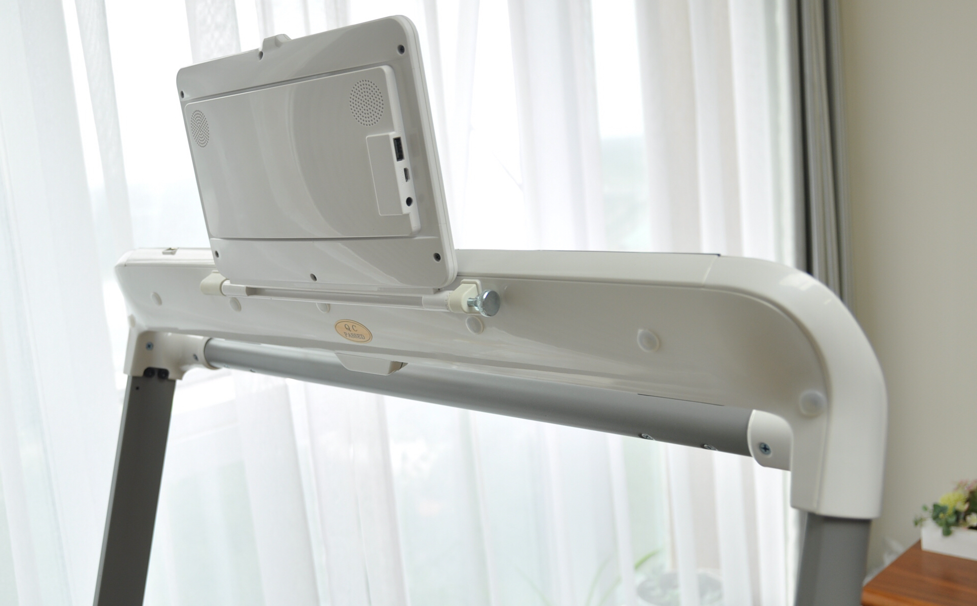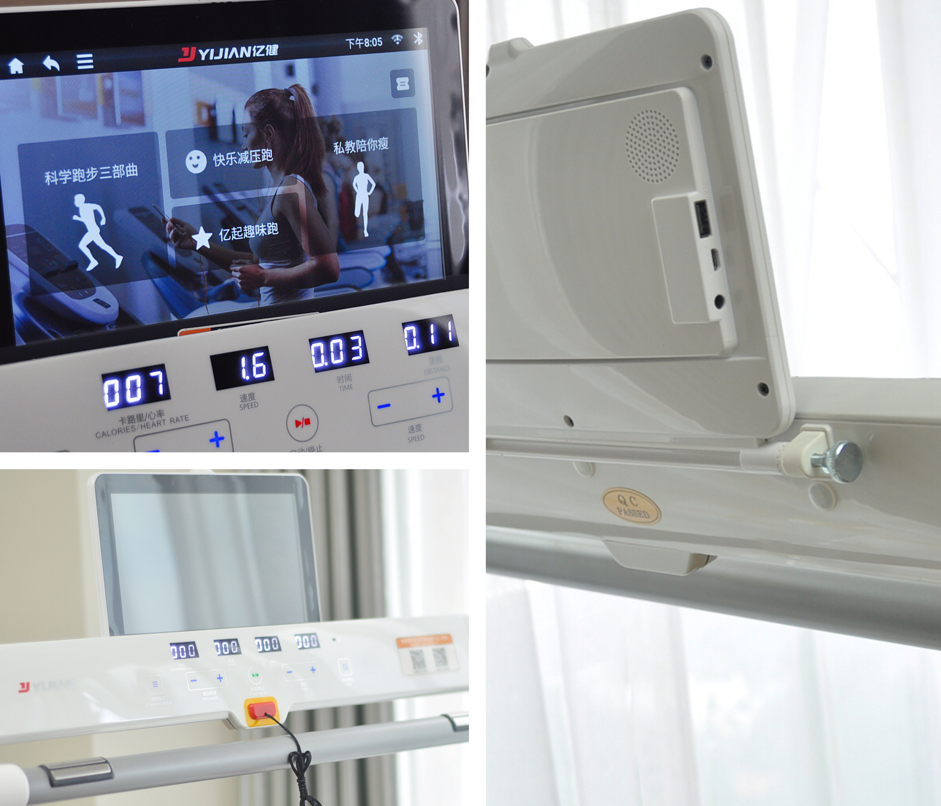 极简风格设计美学的心力AIR搭配银色的配色,整体给我的感觉就是科技和干练,而且整机材质非常不错,无论是底座、立柱还是前扶手均采用精钢材质,产品牢固质感极富。该款为10.1寸高清彩屏版,不仅可以观影解决慢跑时的无聊,还可以选择T8100专业课程,和机器进行互动。