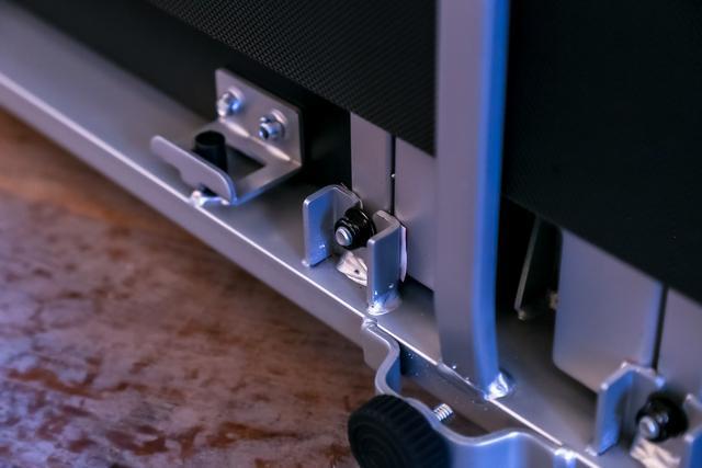 整体机身采用的都是精钢材质,厚实程度很高,不会轻易磨损,并且金属外观很有质感,颜值颇高。总重量56kg,可以扎实地固定在地面上。