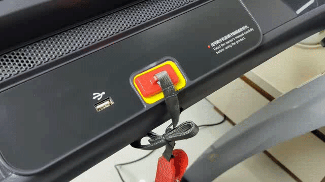 按摩椅的显示屏的下边还有一个蓝牙音箱,能在我们体育运动的时候播放音乐,还有一个USB接口能给手机充电,这样就方便了很多。黄色的部分是安全可靠绳的部分,按摩椅的安全可靠绳都是磁吸和夹子的,把磁吸吸住黄色部分按摩椅才能正常运行,夹子夹在身上就会更安全可靠。