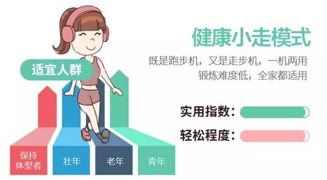 根据一些研究,每分钟110步以上,130步以下(4.8km/h-6.4km/h)的步频是比较合理的中等强度标准,亿健恶魔Note智能化按摩椅较好的解决了这个问题,在身心健康小走模式下连续行走30分钟方可达到健身活动的作用,具体如下图: