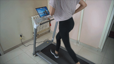 通过上述GIF动图可以看到当跑者在亿健恶魔Air按摩椅上展开体育运动时,ADS主动自适应,跑板有轻微的形变,但是在跑板下方的气囊根据用户的体重展开了调整,通过跑者的跑姿智能化调节气囊给出最完美的脚感,通过缓震技术空气气囊,使得跑台和机械之间的噪音得到了控制。