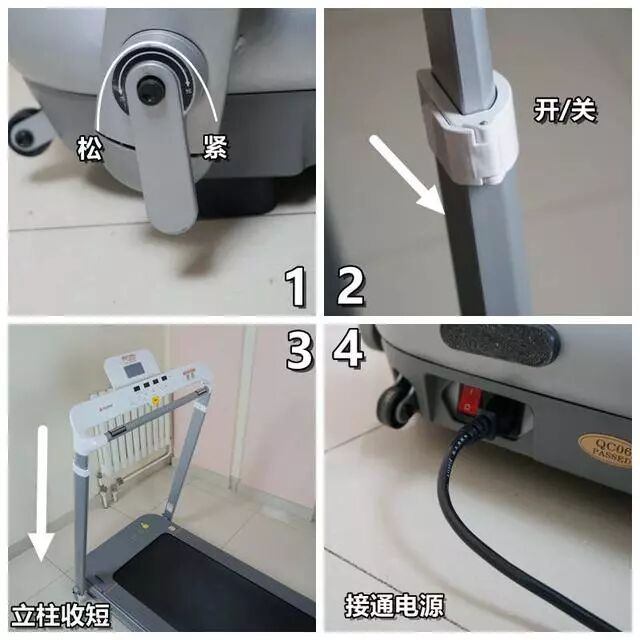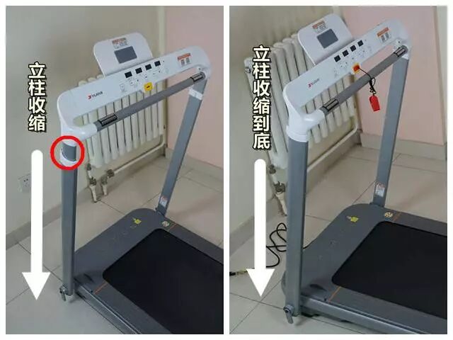 需要注意的是,收缩左右立柱一定要缩至最底部,同时旋转把手固定拧紧方可。