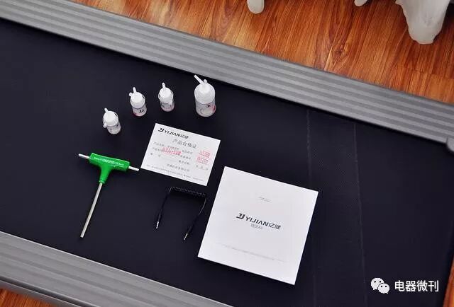 随机附带的配件袋里,包含产品说明书/保修卡/合格证1套、T型扳手、电源线、润滑油和安全锁的锁夹。跑步机油的作用主要是让跑板和跑带之间有一个润滑效果,并在瓶子上给大家做了详细标明!此外,其他配件也颇有用处,后面会详细介绍。