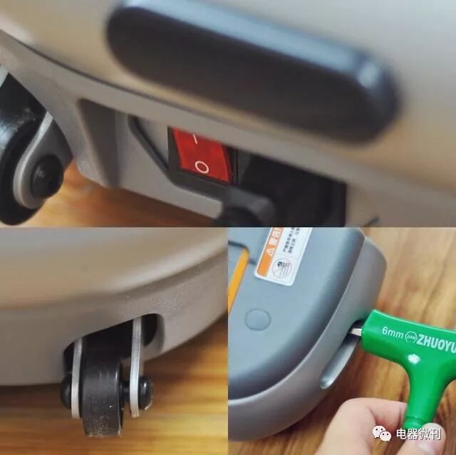 拆过了包装、看过了外观,我们从上至下看看产品的细节。在螺丝等做工上,值得称赞。底座、立柱及前扶手采用精钢材质,产品牢固且有质感