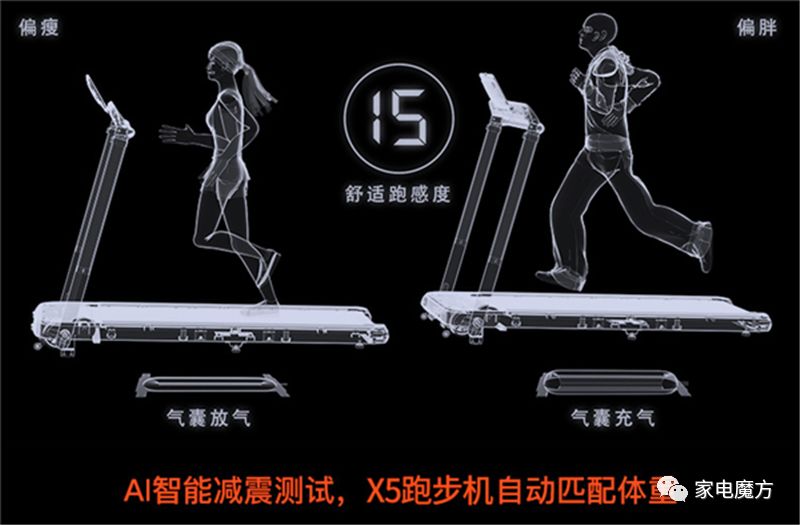 亿健官方说明:AI智能减震的原理是根据用户体重,跑步姿势,气囊智能充放气,自动调节减震阻尼,保证相同体重获得相同的跑感,无极软硬度调节,根据每个人体重做出相应调整,给出合适的跑步方案。