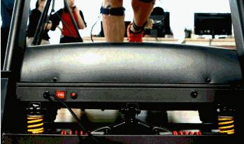 弹簧气动,通过跑台前段竖直和水平方向的弹簧组合来达至气动效用。