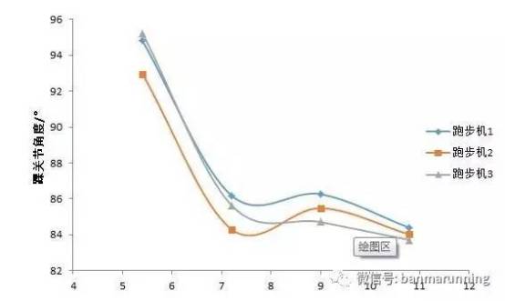 亿健的踝关节角度要大于舒华和启迈斯,说明测试者在亿健上慢跑时身体仅需要进行幅度较小的缓冲器就能达至气动的效用,因此亿健的气动效用较好,跑台稳定性较强。