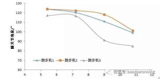 亿健的膝、踝关节活动范围增加不大,舒华和启迈斯膝、踝关节活动范围变化较大,说明亿健在中高速跑时能有更好的气动效用和更强的稳定性。