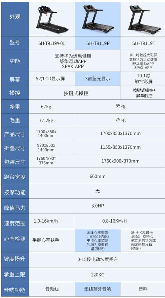 ☆小总结:舒华慢跑机的E系列颜值较为高,娱乐性较为强,而9119系列的款式,性价比都较为高,X系列则是性能较为好。
