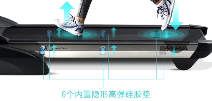 舒华慢跑机的减震方式,采用的主要是硅胶减震和橡胶+气囊双重减震。