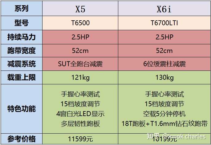 ①X5系列是舒华跑步机的巅峰之作了,新款采用了SUT双层跑板+5mm减震棉,回弹性舒适;而X6i同样也是全跑台减震,T1.6mm钻石纹跑带提高了耐用性,虽然比不过X5,奈何价格太香~~个人认为X6i的颜值也更时尚。