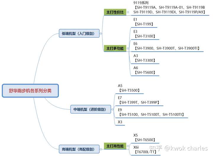 9119系列主打性价比。E系列和A系列主打娱乐和外观,外观和娱乐性会好一些。X系列属于高端跑步机,主打高性能。V系列和T系列属于商业跑步机,本文不作所推荐。