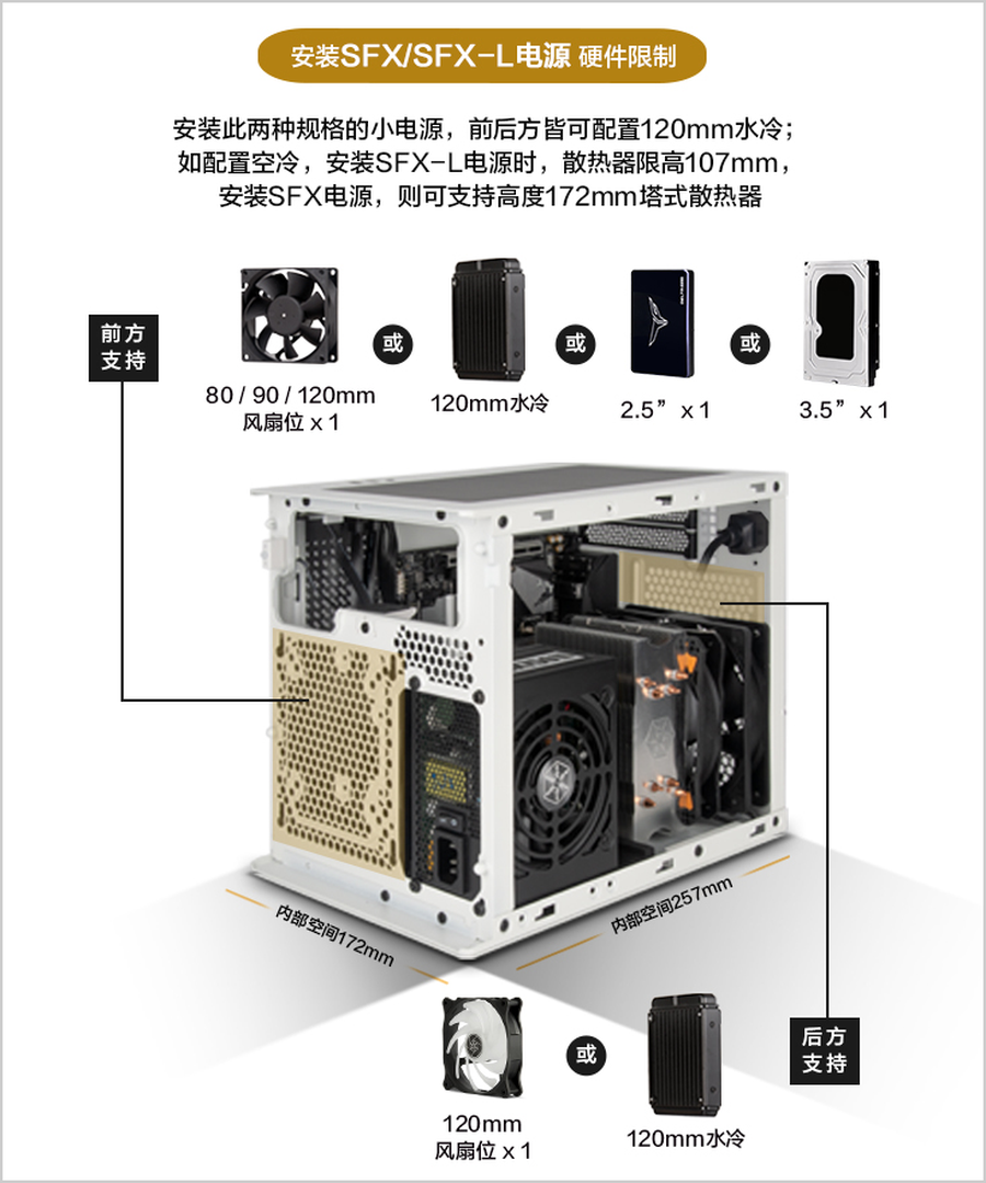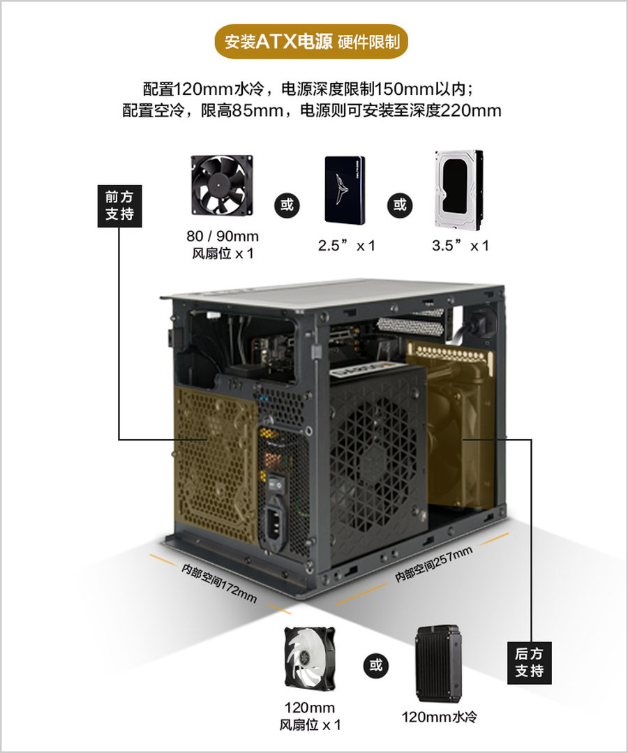 一,支持ATX或者SFX/SFX-L电源(加装ATX电源需要格外注意其它零件的体积)