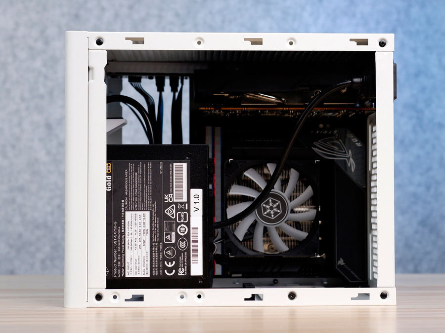 电源同样选用的是银欣自家的产品——银欣SX750-G,它是这款SFX电源,额定功率高达750W,并且透过了80PLUS金牌认证。接口部分。它配备1个CPU 8pin接口、1个CPU 4+4pin接口、2个PCIe 6+2pin显卡接口,能够带动不少高端CPU和显卡。