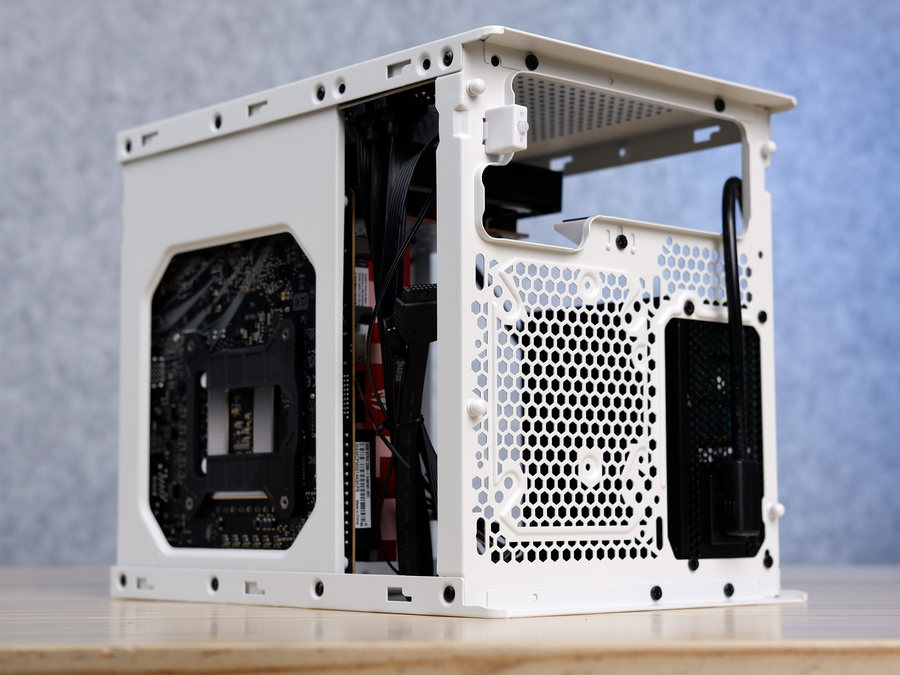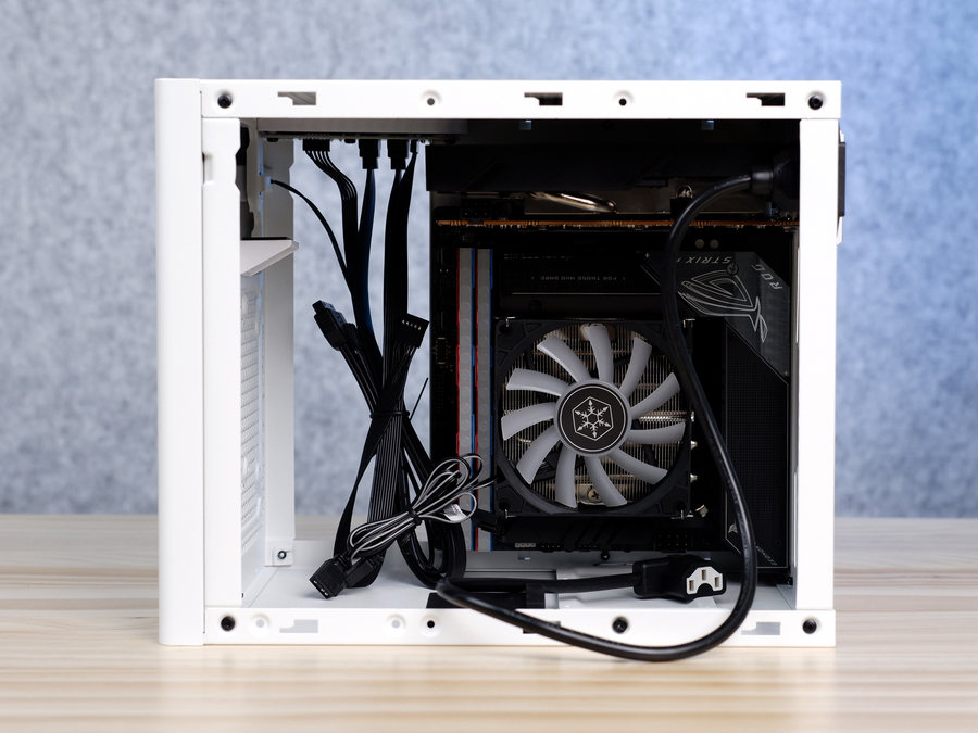 对于银欣SG16此款ITX机壳,本栏强烈建议我们搭配SFX电源使用,能够节省出机壳外部更多空间,便于散热器和其它零件的加装。