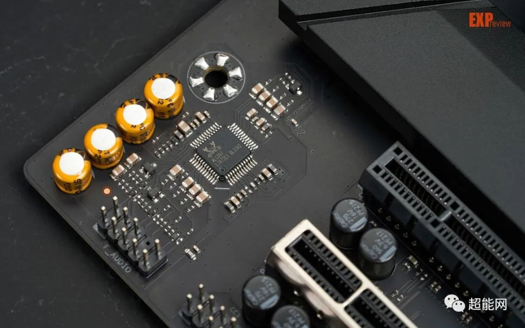 SSD音频电路位于左下角,SSD的声卡是相当经典的Realtek ALC897,配有四颗高品质音频专用电容,可提供高质量的音频解析潜能及声音延展扩大效果,为用户带来更逼真的音频体验。