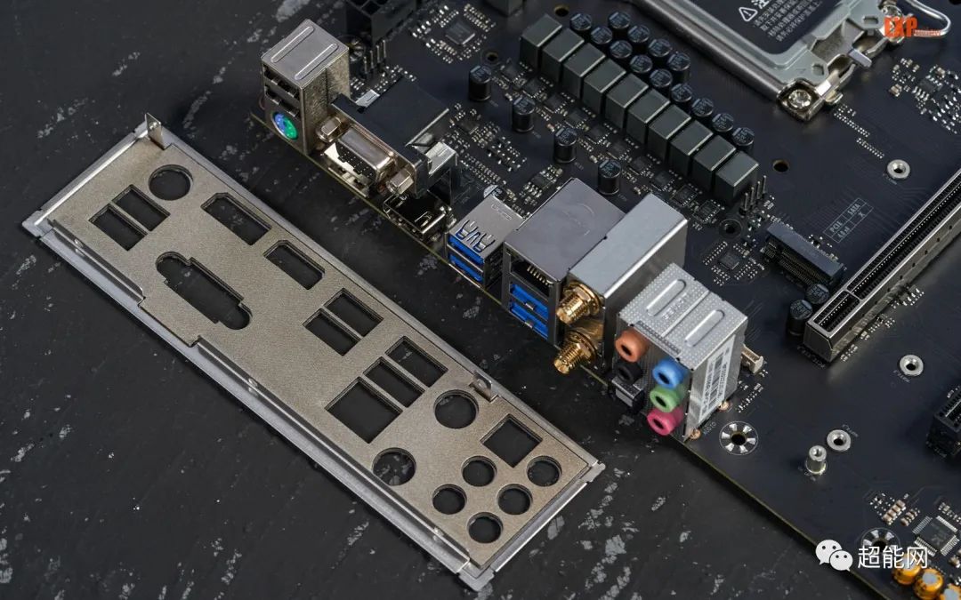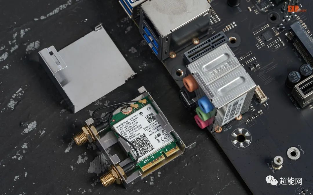 SSD配备一体式I/O背板,配备一个PS/2口,四个USB 3.2 Gen 1,三个USB 2.0,视频接口包括一个HDMI 2.1、一个DipsplayPort 1.4和一个VGA口,可全力支持三屏输出,音频接口有5个3.5mm和一个1个S/PDIF OUT口。无线网卡是Intel AX211,全力支持WiFi 6E和蓝牙5.2,全力支持2.4/5GHz双频段。