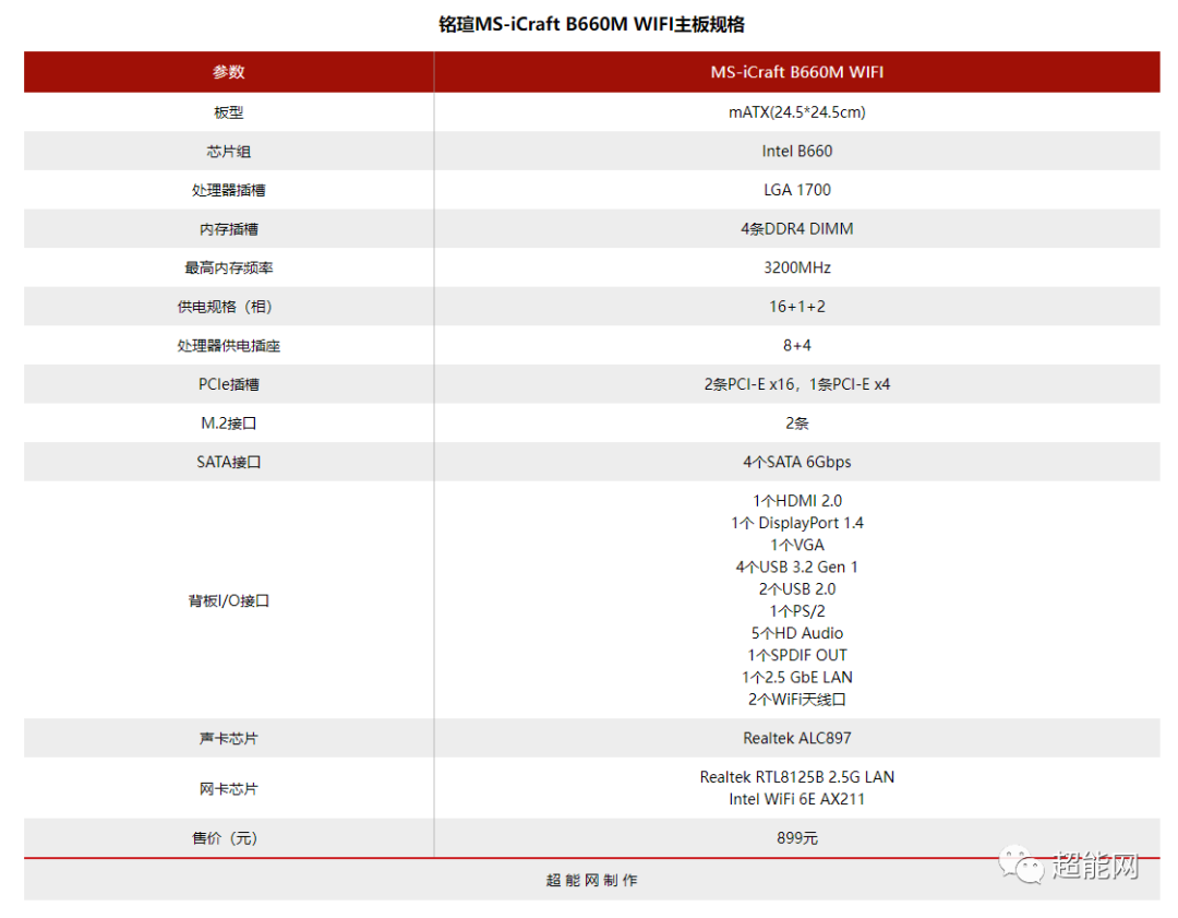 铭瑄MS-iCraft B660M WIFISSD技术标准:
