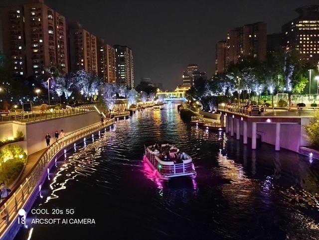 接下去我们来看看COOL 20s的夜景拍摄表现。凭借虹软定制算法的夜景模式,以及多图合一的处理算法,该机在光源复杂的闹市区中拍出来的照片也能保持一定的细节,并不会被复杂光源过多干扰。