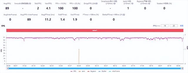 上文也提及COOL 20s是目前支持《王者荣耀》超高帧率模式机型名单中少有的百元机型,由于SoC性能相对有限,本栏开启了默认分辨率+90帧,但游戏实际表现确实超出了我的意料,团战时的表现非常稳定,30分钟下来平均帧率能达到89帧,是真的十分杰出。
