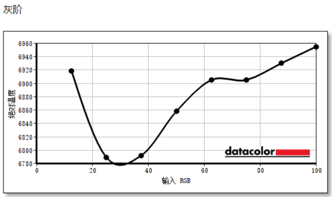有意思的是,这台表明屏的标准色温被预设为9000K左右,不太符合亚洲人6500K的人眼采用习惯,这里建议将表明屏调为暖色温模式。实测在暖色温模式下,色温测试结果在6780-6960K之间,略微超过6500K的标称值,从数字上上看还是偏冷,不过实际观感正常。