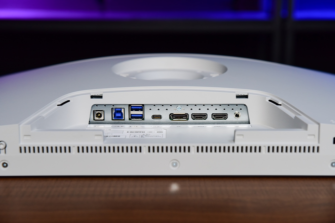 表明屏配备了多达7个外接拓展接口,当中包括2个HDMI2.1表明接口,1个标准DP1.4高速表明接口,1个Type-C表明+充电接口,Type-C支持最高90W PD协议反向充电。另外三个接口分别为1个Type-B输入转2个Type-A USB 3.2输出口,1个3.5mm音频输出口,接口的配置和丰富程度完全够绝大部分用户采用了。