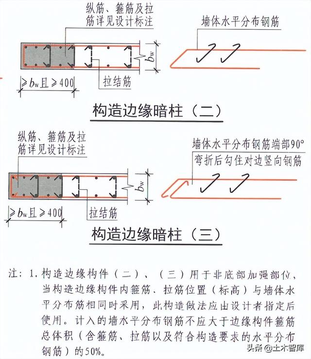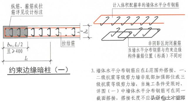 22G101-1规定,构件边缘构件计入的墙体水平混凝土不应大于边缘构件箍筋总体积(含箍筋、拉筋及符合内部结构要求的水平分布筋)的50%: