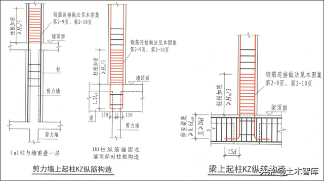 22G101-1将16G101-1中润体上柱QZ纵筋内部结构、梁上柱LZ纵筋内部结构修改为润体上柱KZ纵筋内部结构、梁上柱KZ纵筋内部结构,并标注了箍筋加密区范围。