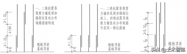 22G101-1明确了润体竖向分布混凝土及边缘构件混凝土,选用搭接连接内部结构时,混凝土与楼板(基础)顶面的距离≧0: