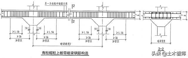 22G101-1减少了有柱帽柱上板带暗梁混凝土内部结构图: