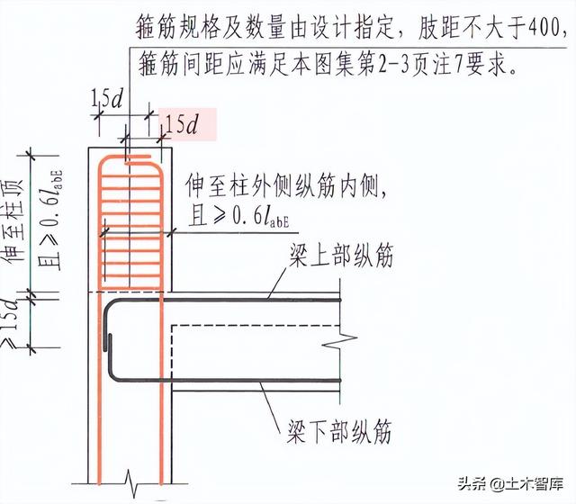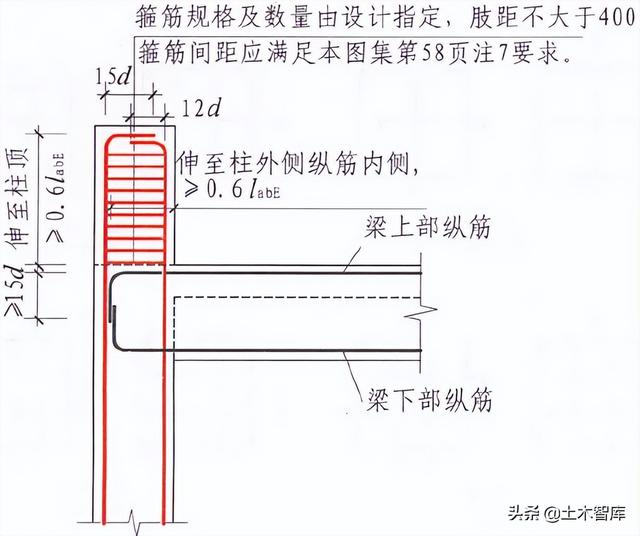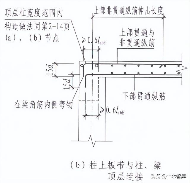 22G101-1减少了柱上板带与柱、梁顶层连接内部结构图: