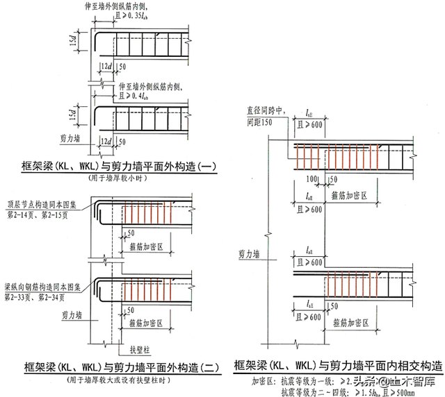 22G101-1减少了架构梁与润体正方形内、正方形外连接内部结构图: