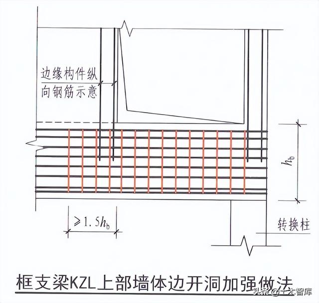 22G101-1减少了框支梁KZL上部墙体边开洞加强做法图:
