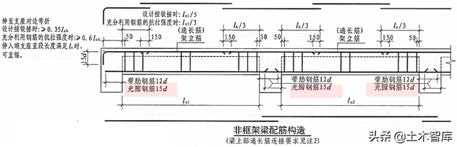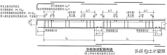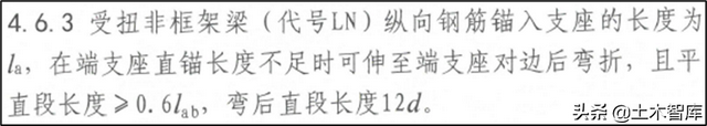 22G101-1规定,非架构梁、井字梁,按简支设计时,弯锚弯后的直皮德盖12d;16G101-1规定翻转段二维宽度15d。对受扭非架构梁亦有相似修改。
