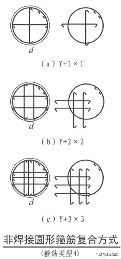 22G101-1减少了非焊接圆形箍筋复合方式内部结构: