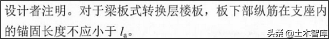 22G101-1规定:胡镇式转换层楼板,板下部纵筋在支座内的主梁宽度不应小于laE;161G101-1为la。