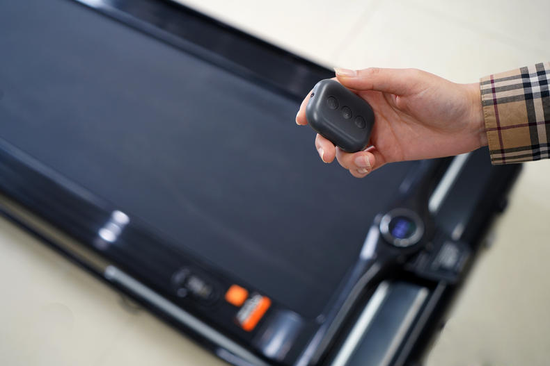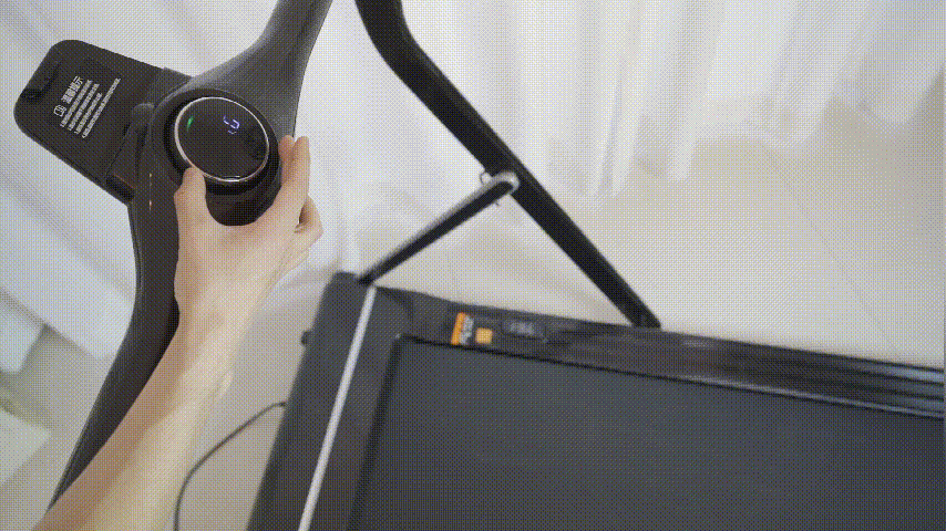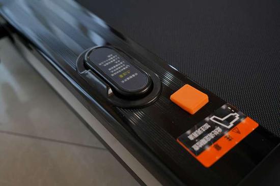 跑步机还能进行双模式切换,一种直接放在地方,插好电源就能启动的平板走步模式,还有一种是拉起扶手的跑步模式。卷曲的这时候只需踩住跑台两侧按钮,按压扶手即自动解锁卷曲,提起扶手更是简单,自动落锁。