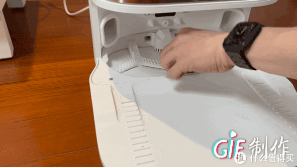 追觅6+1全能机房也设计了一个清水箱和一个污水箱, 容量是2.5L。 我家里全屋清扫, 没清扫30㎡清洗一次撬杠, 差不多可以完成3-4天的全屋清扫, 也就是4天左右保湿一次, 需要保湿的时候也会提醒我, 十分智能。 保湿很方便, 几分钟搞定, 我觉得这个事情不耽误时间。