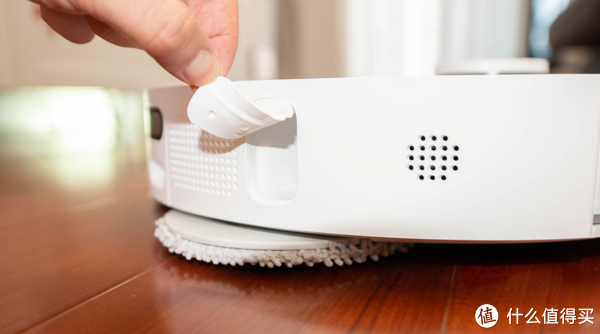 追觅6+1全能机房的清水箱自带了一个液除菌模块, 在清洗撬杠的时候, 和给水箱保湿的时候, 是能够同步除菌的, 加上配合洁净液使用, 可以大大增加房间撬杠的除菌和洁净效用, 也可以降低污水箱的异味。