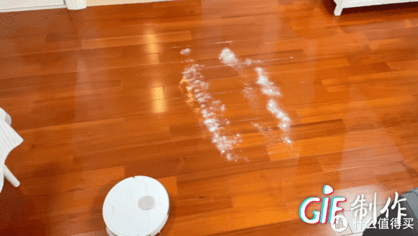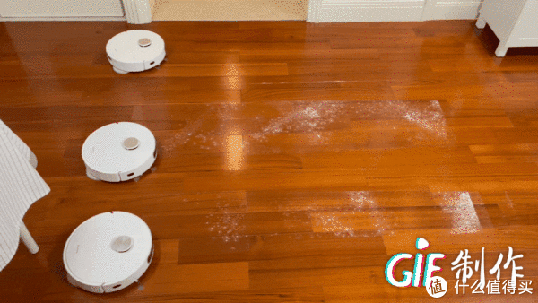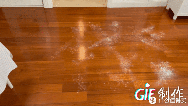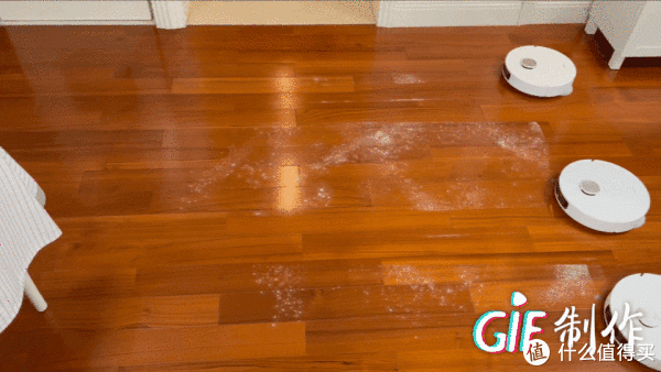 两次扫拖模式, 地面铺了很厚一层面粉, 和一层小米。 一种不容易清扫, 一扫就会打飞, 一种容易粘黏, 追觅S10 Pro这里完成的十分好, 一次洁净。