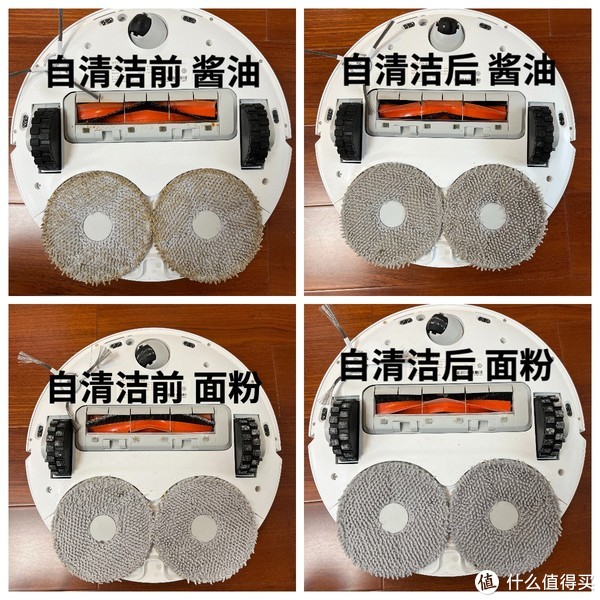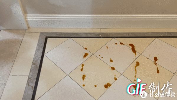 追觅的旋转撬杠是180转/分钟, 高速旋走脏污, 而且有仿人手的按压湿拖, 比如说下面这种酱油的重污渍, 一次搞定毫不犹豫。