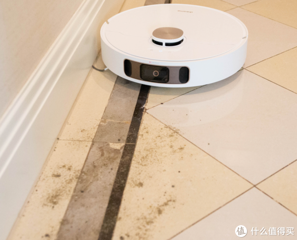 边刷可以轻松处理延边的垃圾, 灰尘, 这种瓷砖缝隙中的粉尘特别难清理, 在追觅S10 Pro面前一次处理不留痕迹。
